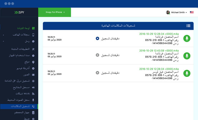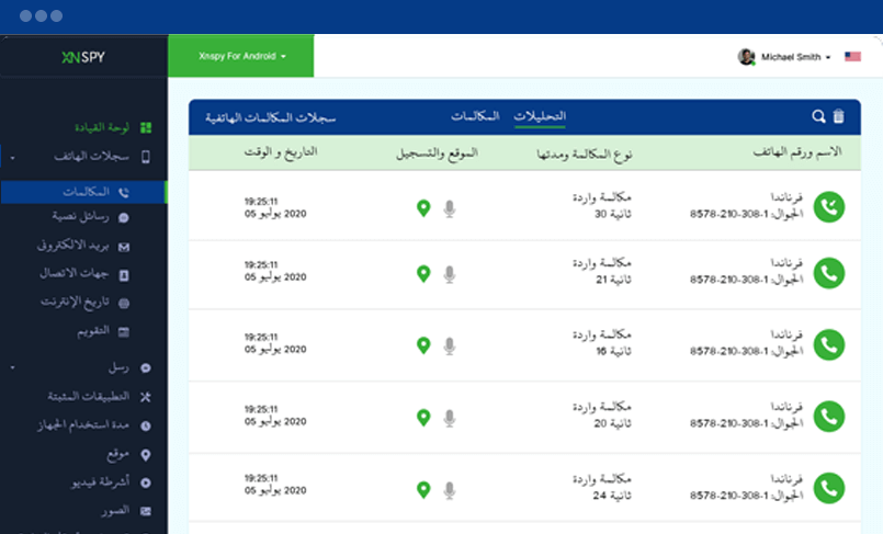 سجل المكالمات الواردة والصادرة ، واستقبل تنبيهات عبر البريد الإلكتروني عندما تتصل جهات الاتصال المدرجة في قائمة المراقبة بهاتفك الخلوي المستهدف ، وتستمع إلى اتصالاتهم من لوحة التحكم المستندة إلى الويب في XNSPY.