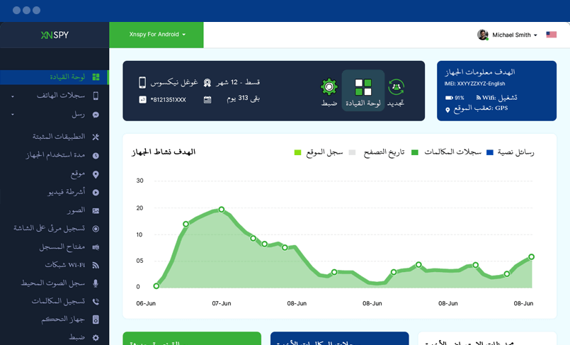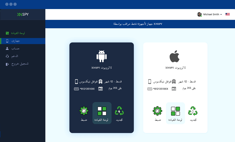 هنا يمكنك رؤية جميع أجهزتك النشطة التي تم تثبيت برنامج XNSPY عليها لمراقبة الأجهزة المحمولة والجهاز اللوحي. يمكنك الاطلاع على جميع التفاصيل المتعلقة بالاشتراك هنا.