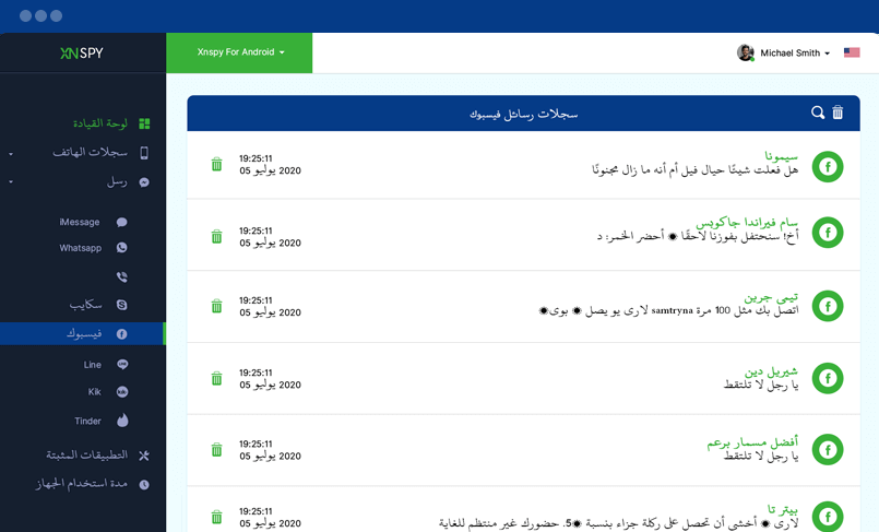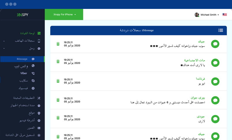 إليك جميع الرسائل المرسلة والمستلمة على الجهاز المستهدف. يمكنك قراءة الرسائل النصية وعرض اسم المرسل ورقمه بالإضافة إلى طوابع الوقت والتاريخ.