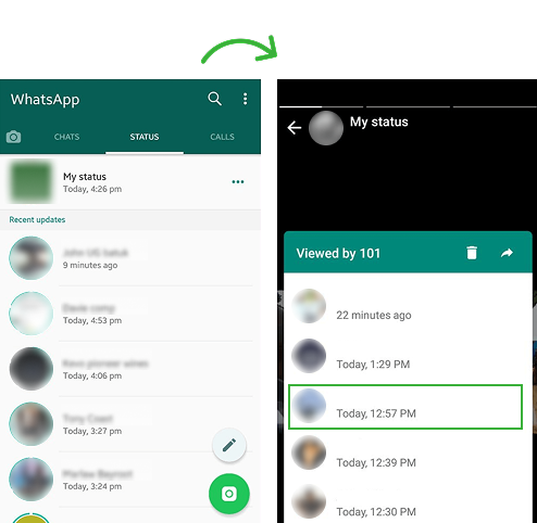 - في علامة التبويب "الحالة"، ابحث عن أي تحديثات للحالة منهم ووقتها.