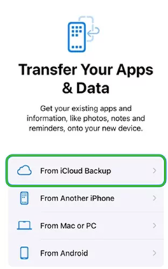 3. حدد "استعادة من نسخة احتياطية على iCloud" وقم بتسجيل الدخول باستخدام معرف Apple الخاص بك.