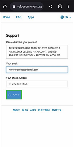 إذا كنت لا ترغب في خوض عناء استعادة رسائل تيليجرام المحذوفة بنفسك، يمكنك التواصل مع فريق الدعم أيضًا. بما أن فريق الدعم يتمتع بخبرة وأدوات أكثر، فمن المرجح أن تجد حلاً بمساعدتهم.