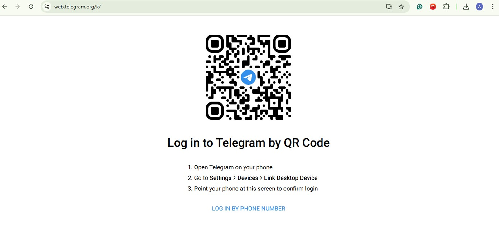 1. انتقل إلى web.telegram.org وقم بتسجيل الدخول إلى حسابك.