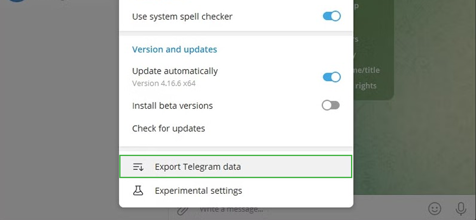 6. تصدير البيانات من Telegram Desktop
