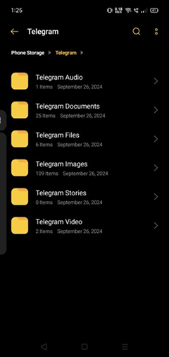 4. ابحث عن الرسائل أو الوسائط المخزنة مؤقتًا من Telegram لأنها قد تحتوي على محادثات محذوفة.