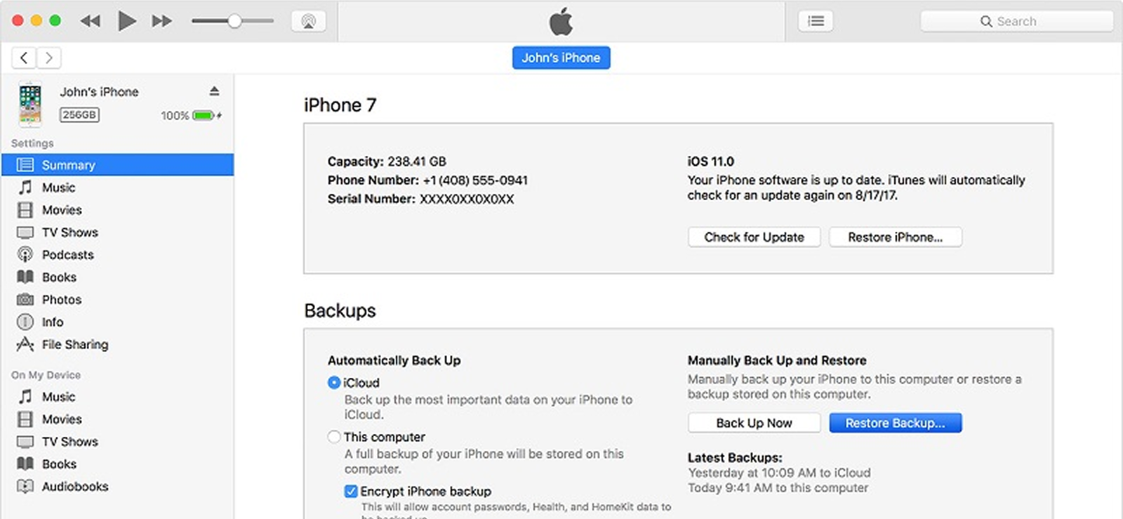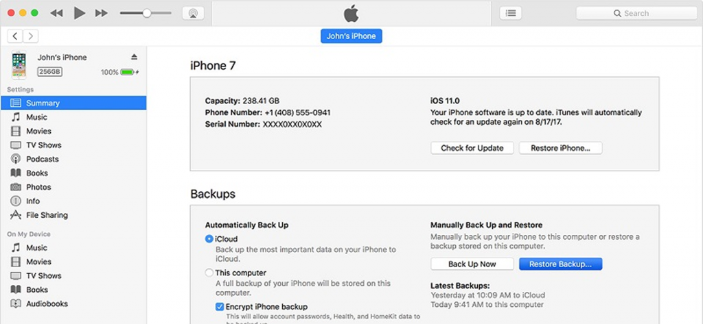 9. انتقل إلى نسخة احتياطية لـ iTunes