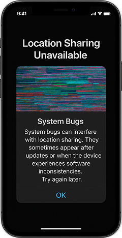 قد تؤثر ثغرات نظام iOS أيضًا على مشاركة الموقع. تظهر أخطاء النظام أحيانًا بعد التحديثات أو عند مواجهة الجهاز خللًا في البرامج. قد تمنع هذه المشاكل الهاتف من معالجة بيانات نظام تحديد المواقع العالمي (GPS) أو إرسالها بشكل صحيح.