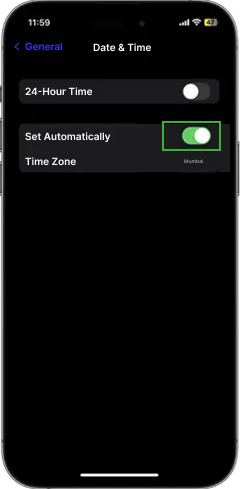 هناك عامل آخر وهو إعدادات التاريخ والوقت غير الصحيحة. تعتمد خوادم Apple على مزامنة دقيقة، وإذا تم ضبط ساعة iPhone يدويًا أو انحرفت عن المزامنة، فقد تفشل طلبات الموقع.
