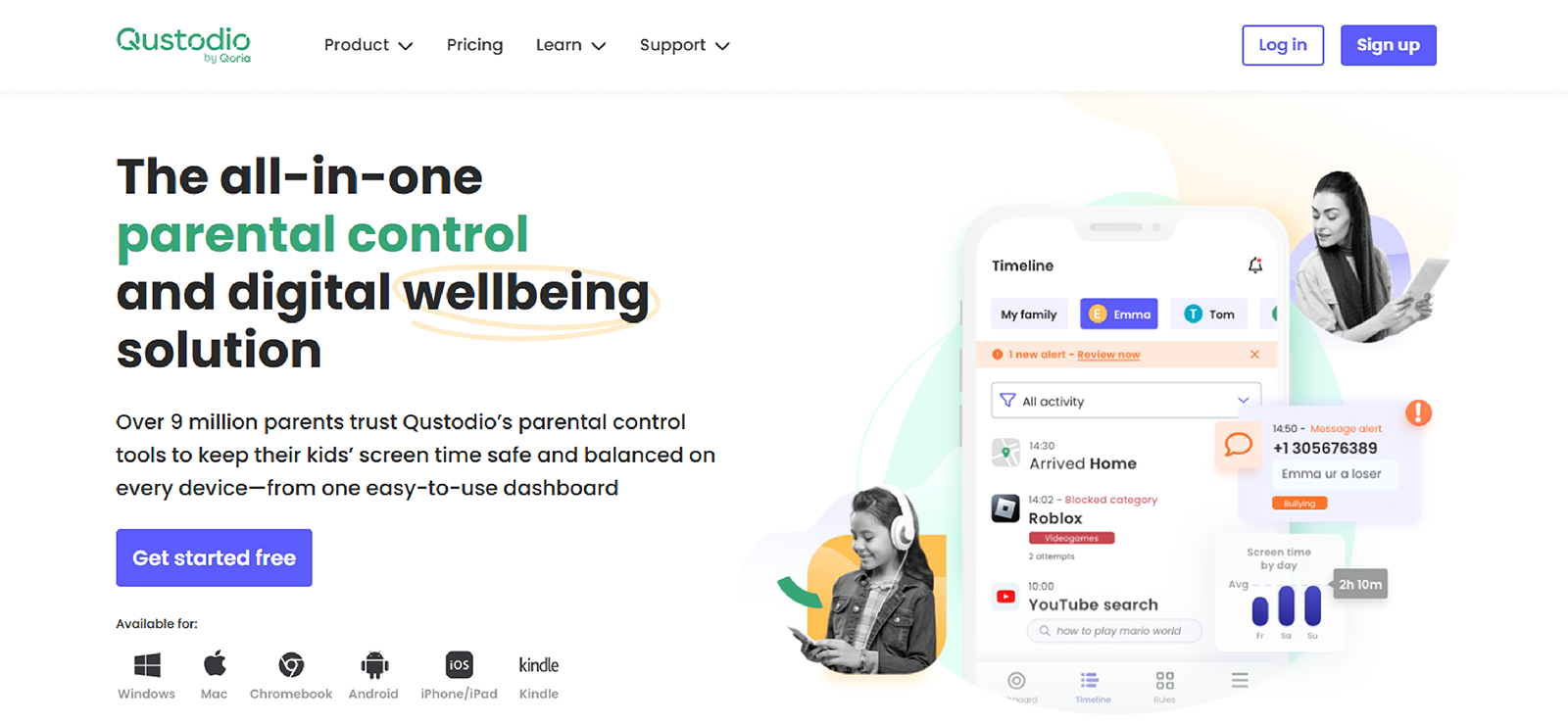 Qustodio is incompatible with both Android and iOS. For Android, it works on OS 9.0 or later; for iOS, it works on 15.0 or later. It also works on Windows, macOS, and Kindle.