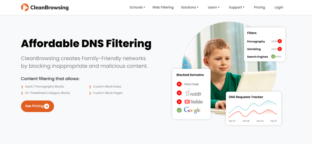 CleanBrowsing is a DNS-based content filtering service that helps parents provide their children with a safe internet experience by blocking adult content, malware, and other unwanted websites at the network level.