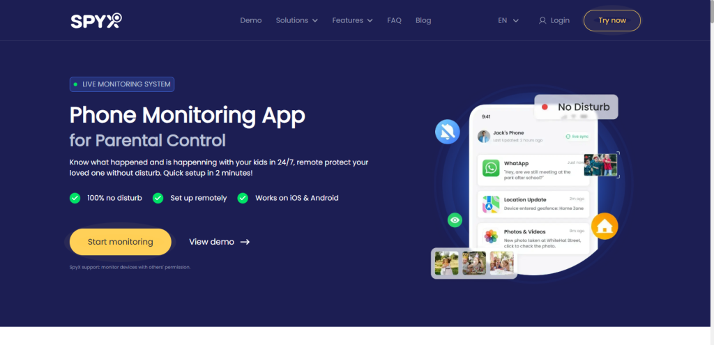 SpyX is a phone monitoring application marketed mainly for parental control and remote tracking. Its core features include monitoring of calls, text messages, social media activities, and location.
