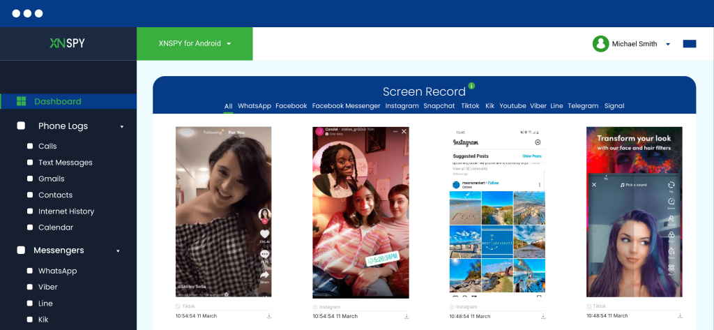 To test this feature, we used the device normally for about 45 minutes, switching between 5 different apps, including a messaging app, a browser, and two social media platforms. During this period, Xnspy captured several screenshots and uploaded them to the dashboard.