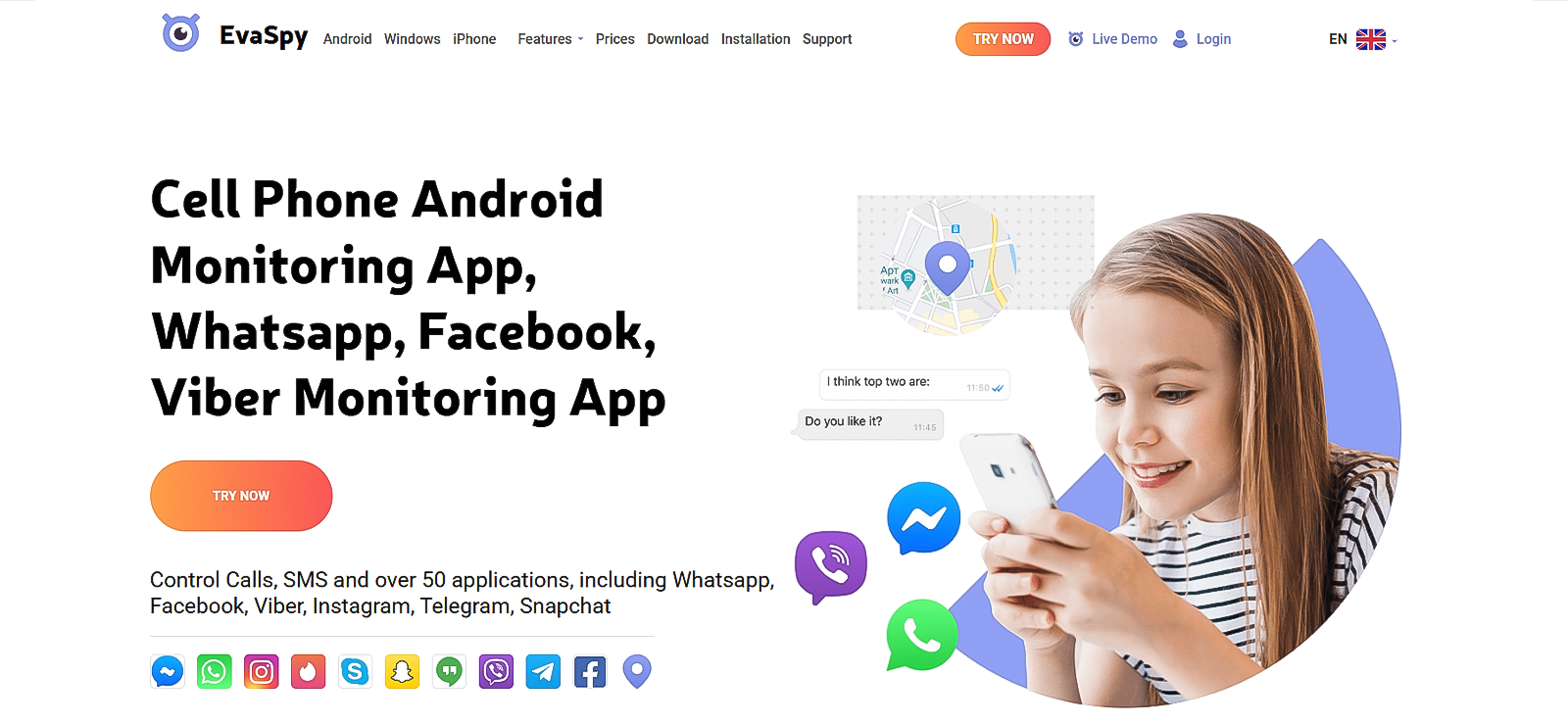 EvaSpy ist eine Überwachungs- und Tracking-App, mit der Sie die Aktivitäten auf dem Smartphone oder Computer einer anderen Person aus der Ferne einsehen können. Zu den wichtigsten Funktionen der App gehören für uns das Aufzeichnen von Anrufen, SMS, Chats in sozialen Medien, Internetverlauf, Tastatureingaben, Standort usw. Die App richtet sich im Allgemeinen an Nutzer, die einfachen Zugriff auf Kommunikationsdaten und grundlegende Steuerungsmöglichkeiten wünschen, anstatt detaillierte Einblicke in soziale Medien zu erhalten.