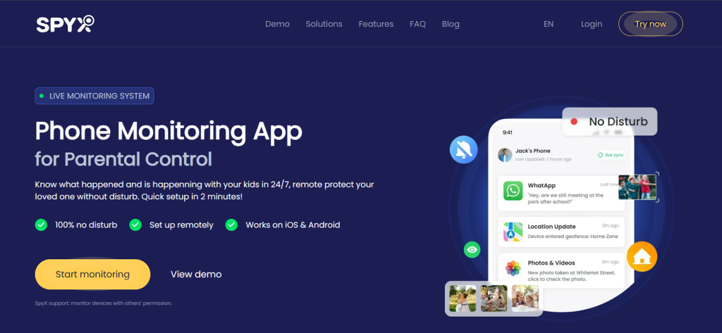 SpyX ist eine Überwachungs-App für Mobiltelefone, die hauptsächlich für elterliche Kontrolle und Fernortung vermarktet wird. Zu ihren Kernfunktionen gehören die Überwachung von Anrufen, SMS, Aktivitäten in sozialen Medien und des Standorts.