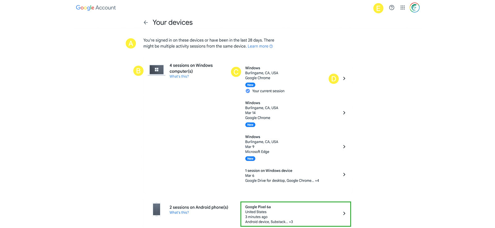 5. Google Account Activity