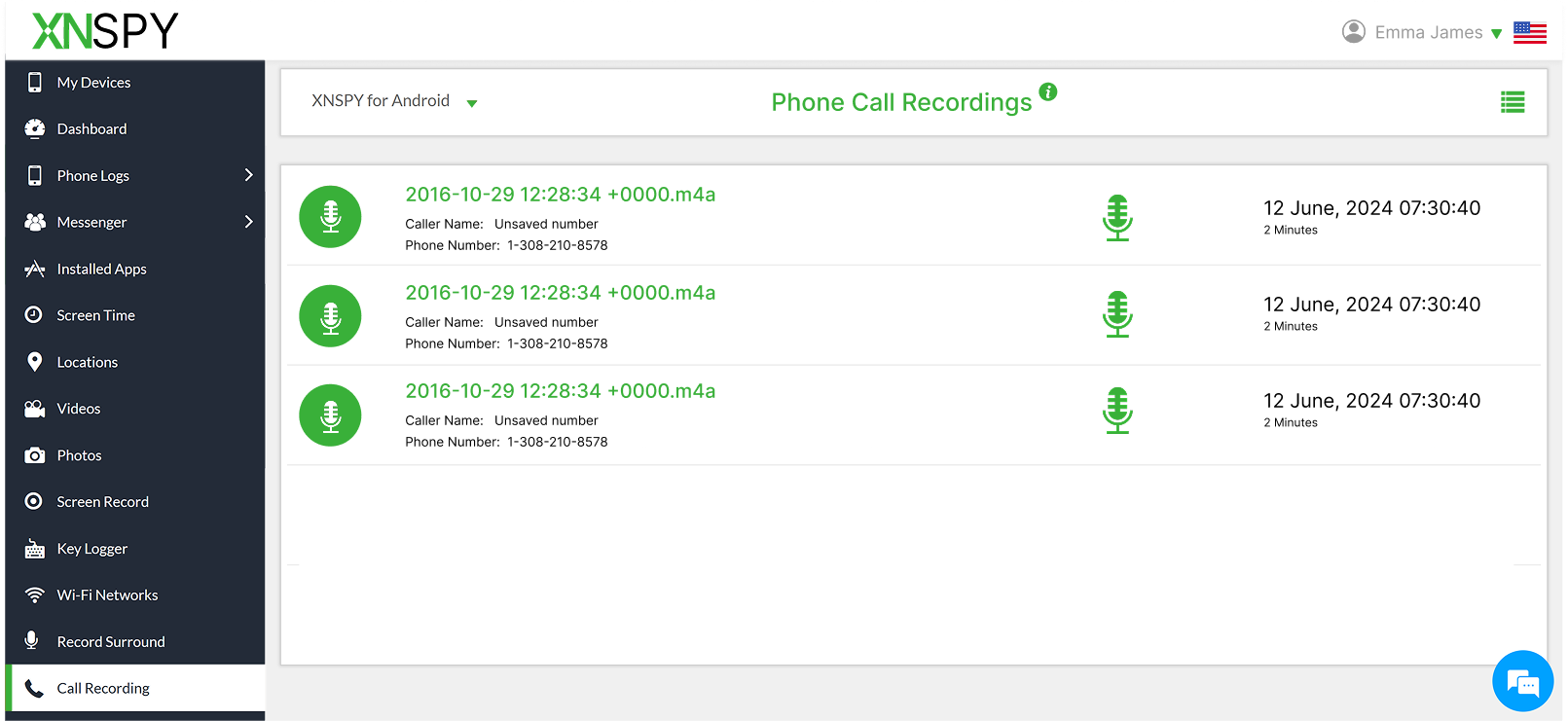 To record calls from multiple contacts automatically, you need an app that supports selective or universal recording. Xnspy allows you to set up automatic recording rules for all your contacts at once and saves these recordings without manual input. This is ideal for professionals who need to track conversations with clients or colleagues consistently. The app organizes recordings for easy playback and offers distortion-free and lag-free audio quality.