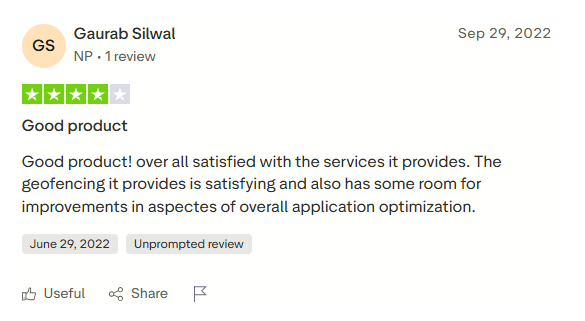 When it comes to notifications, they weren’t immediate, which limits their usefulness in real-time monitoring. Setting up geofencing was not as easy, and it can be confusing to determine the radius and select the exact location.