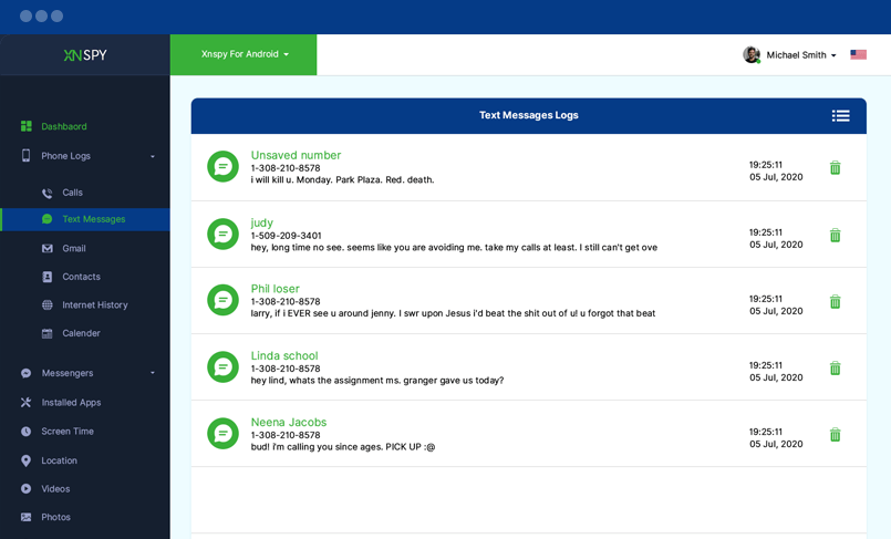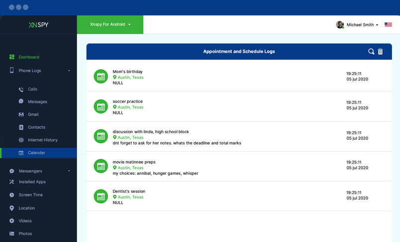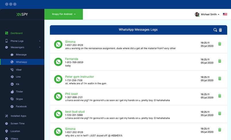 monitoramento de celular e tablet XNSPY instalado. Você pode ver todos os detalhes