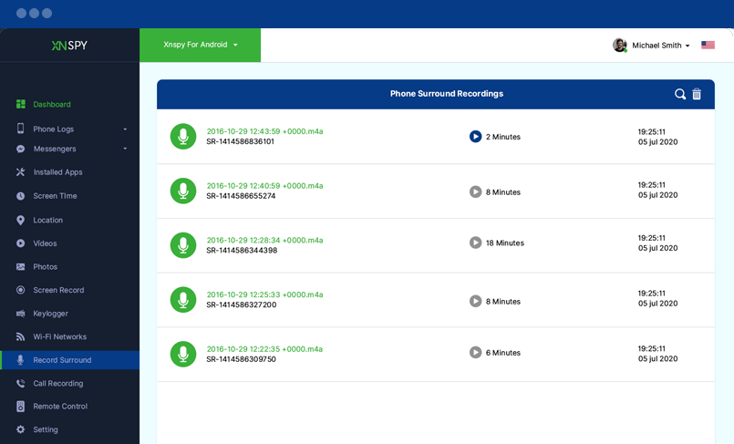 Aqui está a lista de todas as gravações dos arredores do dispositivo de destino. Você