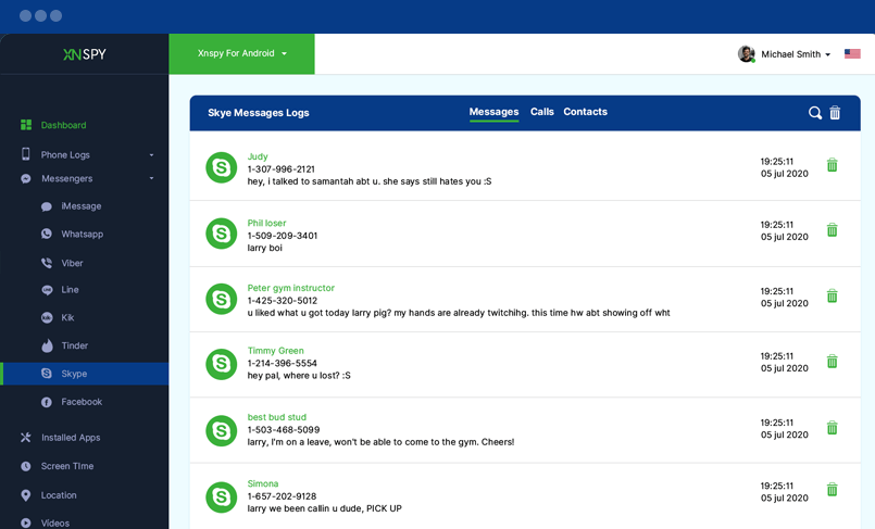 monitorar os contatos, chamadas e bate-papos do Skype. Você também pode visualizar IDs