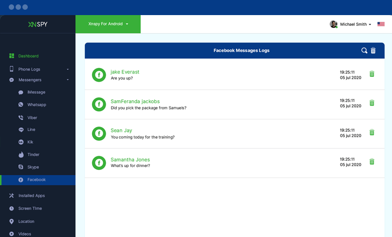 Você pode monitorar todas as mensagens recebidas e enviadas pelo aplicativo Facebook