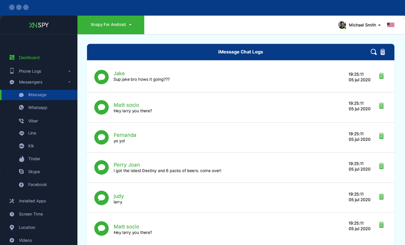 Aqui estão os logs de bate-papo do iMessage do dispositivo de destino. Você pode ler
