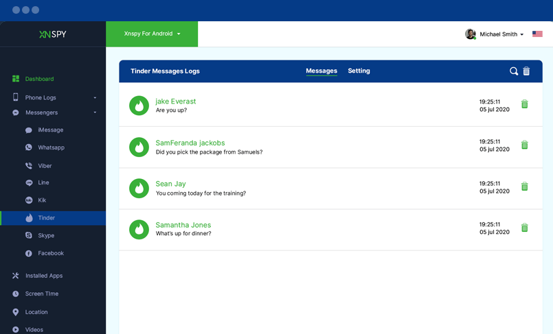 Você pode monitorar todas as mensagens do Tinder enviadas e recebidas e também as
